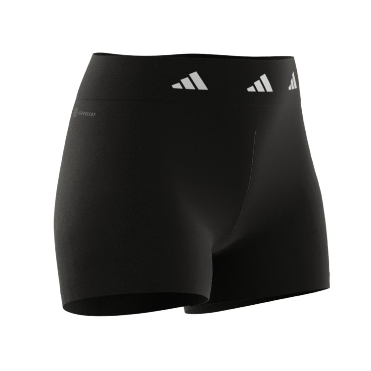 Dámske elastickké šortky adidas športového štýlu. Šortky zúženého priľnavého "slim" strihu s mierne vyvýšeným pásom a krátkou dĺžkou. Sú vyrobené z ľahkého materiálu z polyesteru a elatanu, ktorý je priedušný a elastický. Šortky sú vybavené širokou gumou v páse s logom adidas.