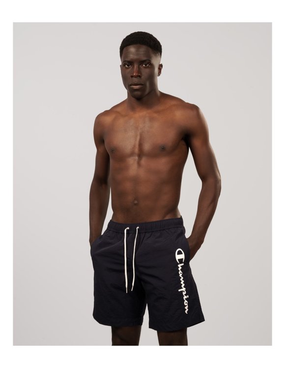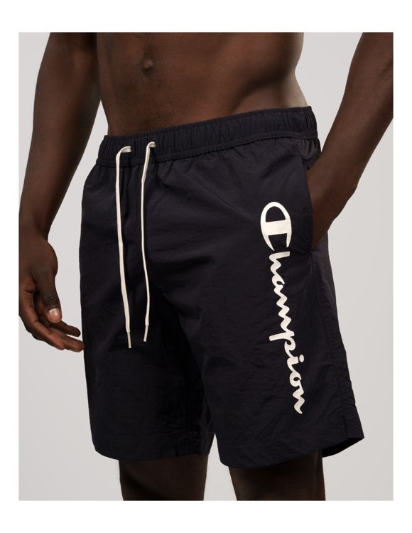 Pánske šortky Champion vhodné na bežné nosenie ale aj ako plavecké a plážové šortky. Dominantnými prvkami sú zakončenia šnúrok a efektné vrecko na zadnej strane. Šortky rovného strihu so stredne vysokým pásom a strednou dĺžkou. Sú vyrobené z ľahkého materiálu z polyesteru, ktorý je priedušný a trvácny. Šortky sú vybavené vnútornou vrstvou zo sieťoviny, bočnými vreckami a doplnené pozdĺžným logom Champion vpredu.