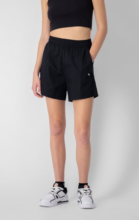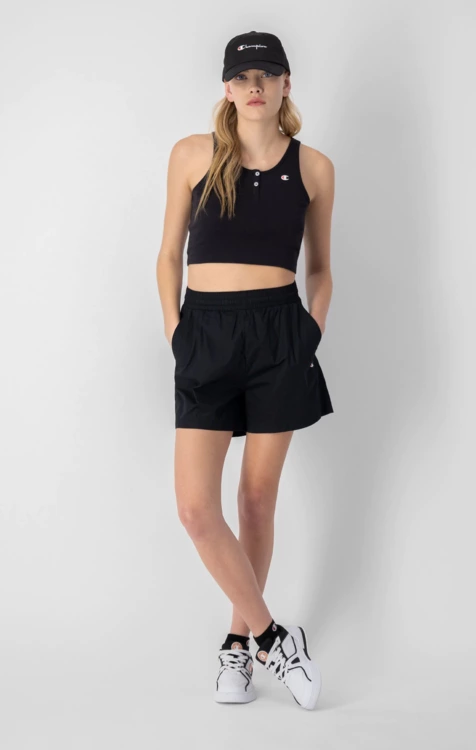 Dámske šortky Champion športového štýlu. Šortky rovného strihu so stredne vysokým pásom a krátkou dĺžkou. Sú vyrobené z mäkkého a pohodlného materiálu vyrobeného z bavlny a elastanu. Šortky sú vybavené elastickým pásom so šnúrkou, bočnými vreckami a malým logom Champion v prednej časti.