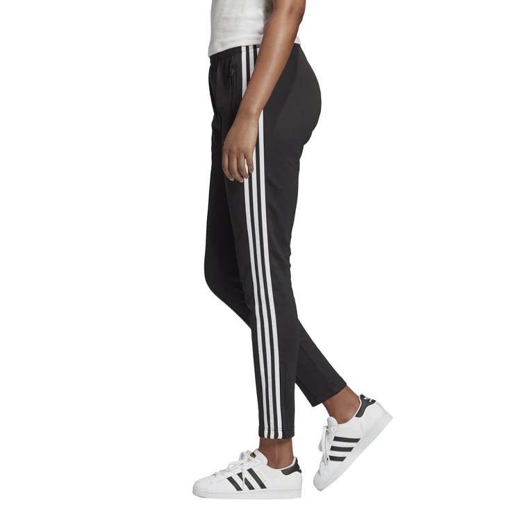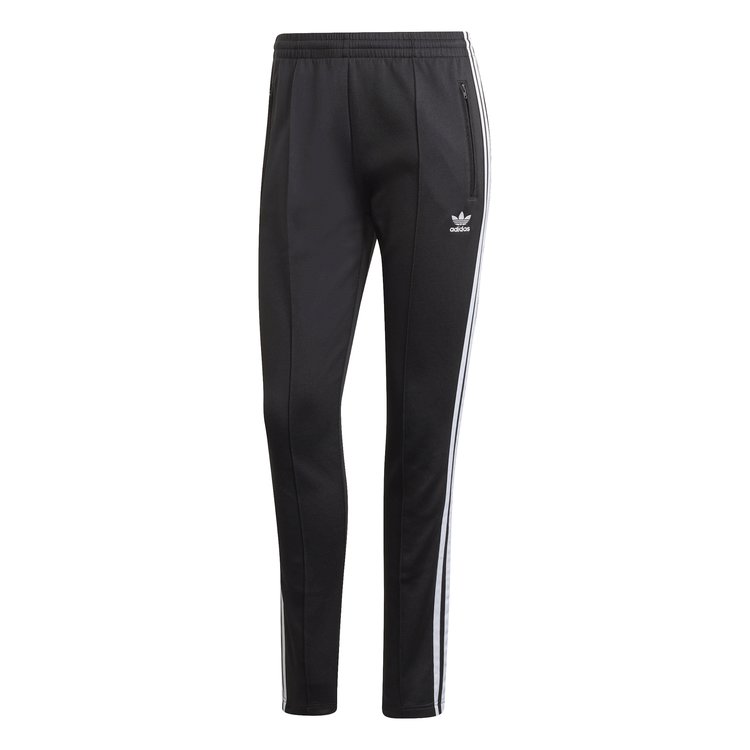 Dámske tepláky adidas originals retro štýlu. Ikonické a nestarnúce tepláky, ktoré reprezentujú dedičstvo značky adidas. Štandardne dlhé tepláky so stredne vysokým pásom a zúženým strihom od pásu až po členky pre moderný štýl. Tepláky sú doplnené zipsom v spodnej časti, prešitím na prednej strane a tromi pásikmi po bokoch. Sú vyrobené z materiálu trikot, vyrobeného z bavlny, polyesteru a elastanu.