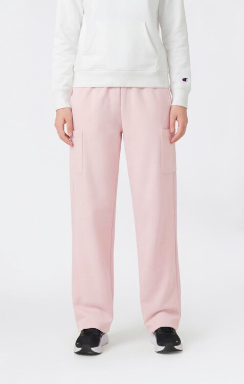 Dámske šikoré tepláky CHSMPION jednoduchého vzhľadu. Štandardne dlhé tepláky so stredne vysokým pásom širokého strihu, ktorý je však dostatočne voľný v oblasti stehien. Tepláky sú doplnené výraznými bočnými vreckami po stranách, bočnými vreckami a logom CHAMPION na prednej strane. Sú vyrobené z mäkkéj bavlny a polyesteru s dôrazom na ekologicku udržateľnosť .