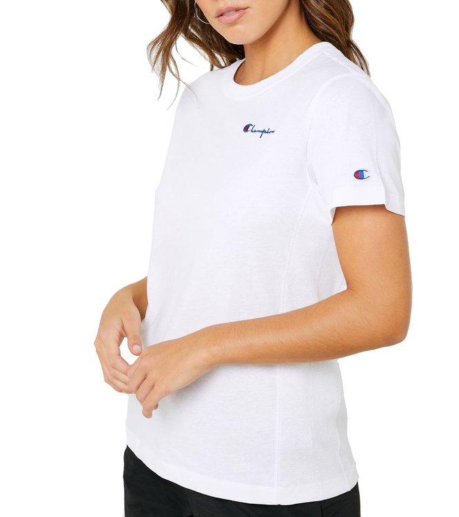 Dámske tričko Champion rovného strihu s jednoduchým dizajnom a logom na hrudi. Tričko s krátkym rukávom je rovného strihu, ktorý je ideálny pre tých čo nemajú radi príliš voľné ani priliehavé oblečenie. Je vyrobené z mäkkého a prémiového materiálu džerzej z bavlny. Ide o ikonický kúsok, ktorý nesmie chýbať vo vašom šatníku.