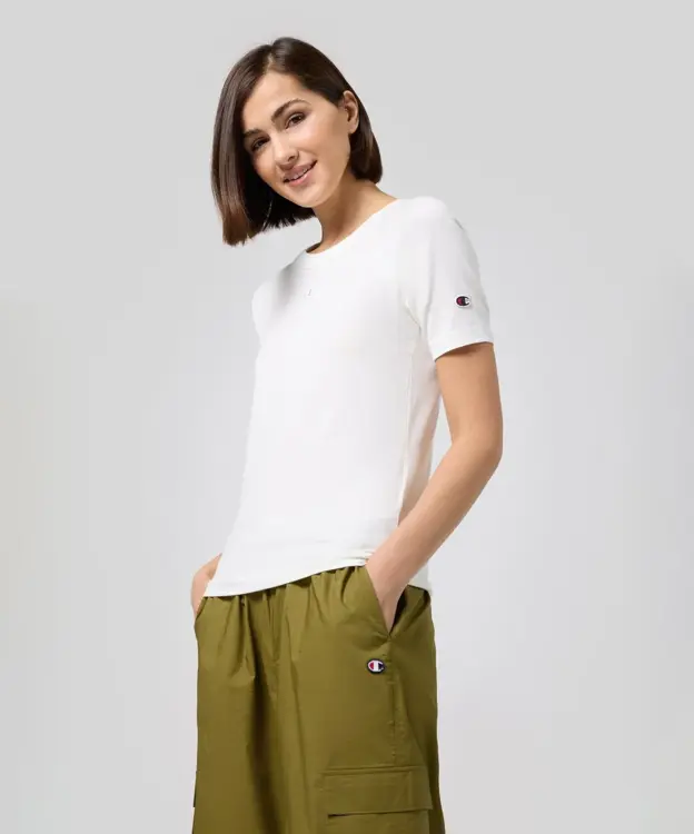 Dámske elastické tričko Champion slim strihu s jednoduchým dizajnom a ikonickým logom na hrudi. Tričko s krátkym rukávom je elastického slim strihu, ktorý je ideálny pre tých čo majú radi priliehavé oblečenie. Je vyrobené z mäkkého a prémiového materiálu džerzej a elastanu. Ide o ikonický kúsok, ktorý nesmie chýbať vo vašom šatníku.