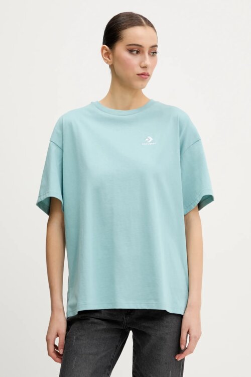 Unisex owersize tričko Converse jednoduchého dizajnu s vyšitým logom na hrudi. Tričko s krátkym rukávom je rovného voľného strihu, ktoré je ideálné pre tých čo nemajú radi príliš priliehavé oblečenie. Je vyrobené z mäkkého a vzdušného materiálu džerzej z bavlny. Jendoducho kúsok, ktorý nesmie chýbať vo vašom šatníku.