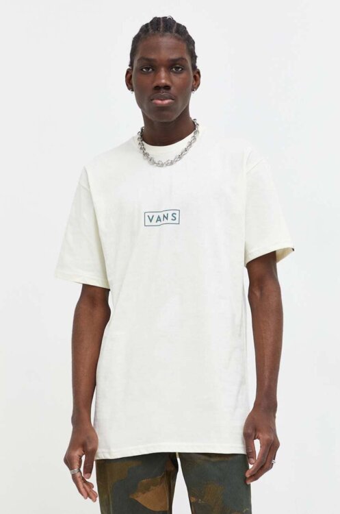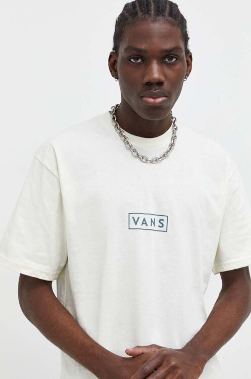 Pánske tričko VANS jednoduchého dizajnu s logom na hrudi. Obľúbený model, ktorý by nemal chýbať vo vašom šatníku. Tričko s krátkym rukávom je rovného strihu, ktorý je ideálny pre tých čo nemajú radi príliš voľné ani priliehavé oblečenie. Je vyrobené z mäkkého a ľahkého materiálu džerzej z bavlny.