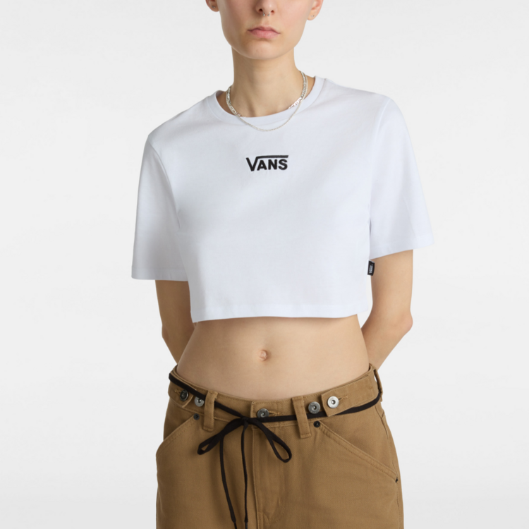 Dámske skrátené tričko VANS s jednoduchým dizajnom. Crop top VANS s krátkym rukávom je rovného skráteného strihu, ktorý je ideálny pre tých, čo nemajú radi priliehavé ani príliš voľné oblečenie. Je vyrobené z mäkkého a vzdušného materiálu džerzej z bavlny a doplnené malým logom v pradnej časti.